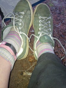 Once I made it back to Pete Lake, my first task was to get my wet boots and socks off. My feet were immediately snuggled into my camp shoes and a pair of Mom’s feet sweaters.