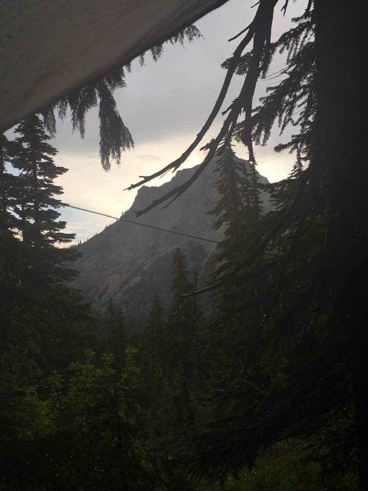Day 5 was a long-ish day. I camped near Lemah Creek, thinking the crossing would be easier in the morning as the rain was supposed to be lighter overnight. My evening consisted of getting my tarp up quickly, getting my gear situated, switching over to dry camp clothes, and crawling into my hammock. It was still relatively early, but I knew I’d be dry & warm in the hammock.