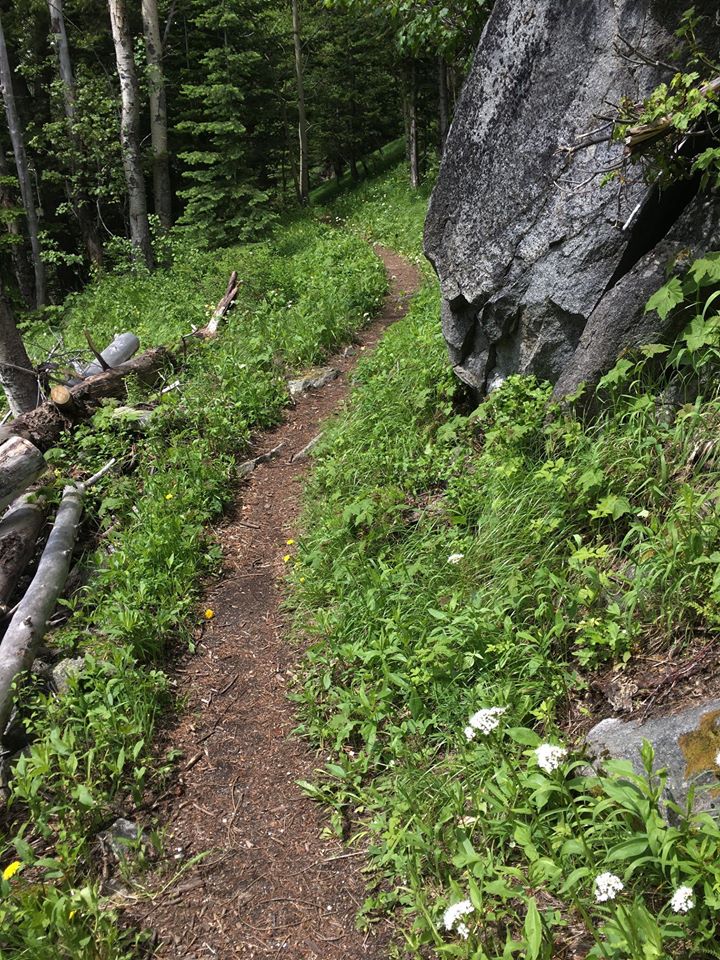 This area suffered a significant wildfire a while back; one result of that is a lot of standing dead trees & a lot of downed dead trees. The first bit of trail from the trailhead is almost depressing as one is traveling through a jumble of downed & dead trees. Within a mile, though, the trail enters more appealing terrain.