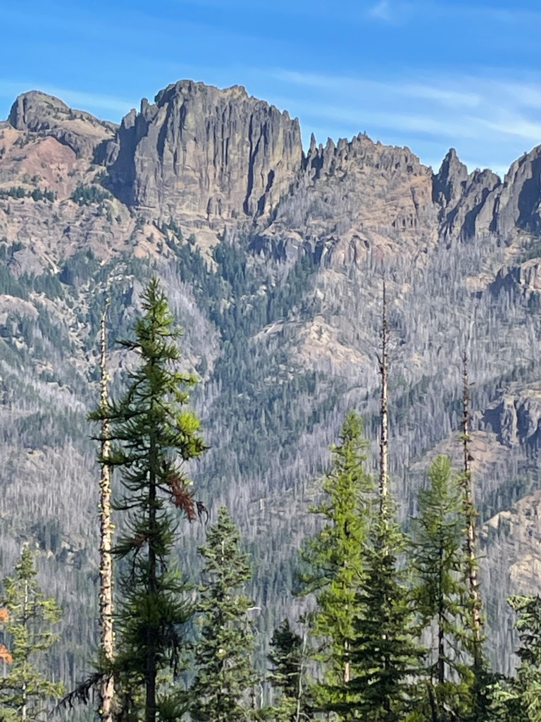 Back to climbing! Because of the fire, every year brings new blow-downs. I encountered several that I imagine make the trail impassible to stock; that’s probably why I stopped seeing signs horses had been through the area.