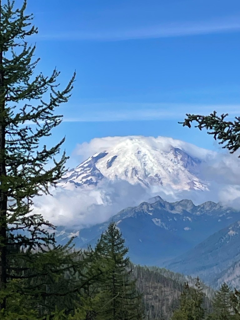 After work Friday, I drove up toward Chinook Pass for a hike. The hike up to Goat Peak is beautiful and terrible. It’s steep – about 3000′ of elevation gain in three miles – and the trail is not in great shape in some places. (This is largely due to the fire.) It’d be a good training hike — it’s just under nine miles, so it could be done as a day hike and it has a lot of elevation gain & loss — but the trail is in such bad shape in places I’m not sure I want to do it again anytime soon.
