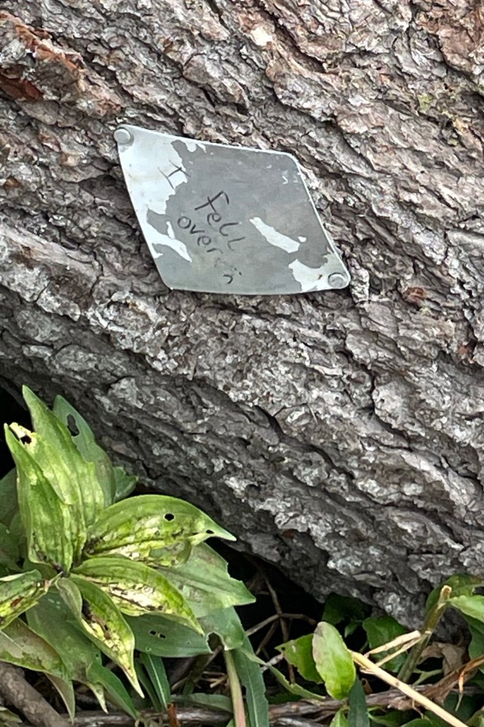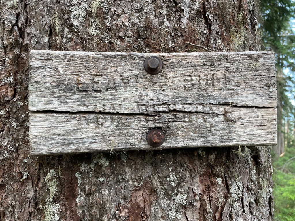 We arrived at Indian Springs and quickly located a good campsite. This spot used to be a designated campground. There are still several picnic tables in the area, and the remains of the campground’s pit toilet. (The building has collapsed, but the decking is solid & the toilet remains.) Indian Spring is flowing still, at about the same rate as the picture I posted above. At this spring, instead of a leaf spout, someone used one of the laminated “No Camping” signs. It’s more durable than a leaf. I hope someone removes it before winter sets in. (The winter’s snow is likely to dislodge it, and it will end up somewhere in the forest – where it doesn’t belong.)