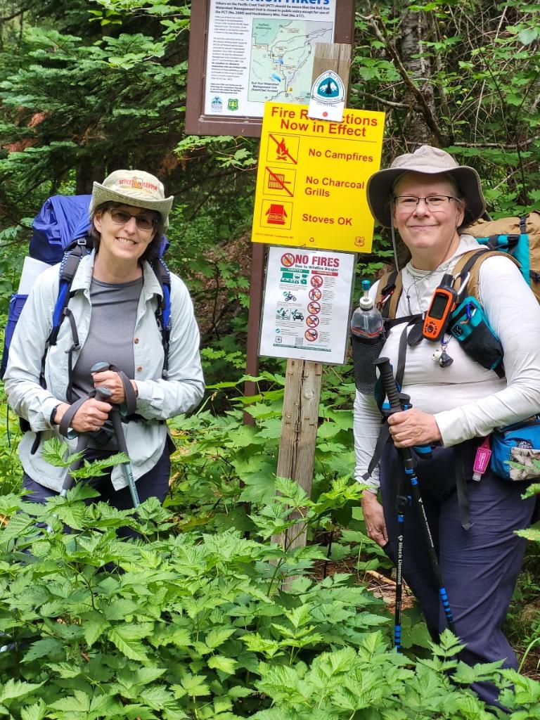 Parts of this trail had numerous blowdowns. A trail crew came through earlier this year and cut what was there at the time. What we encountered were the trees that have blown down since then. We crawled over most and crawled under a few. We also got to watch younger, fitter, spry thru-hikers do one-handed pommel horse vaults over trees that we crawled over. We enjoyed their gymnastic feats and were grateful none of them witnessed our slow, weak crawling. (They’ve had months of practice!)