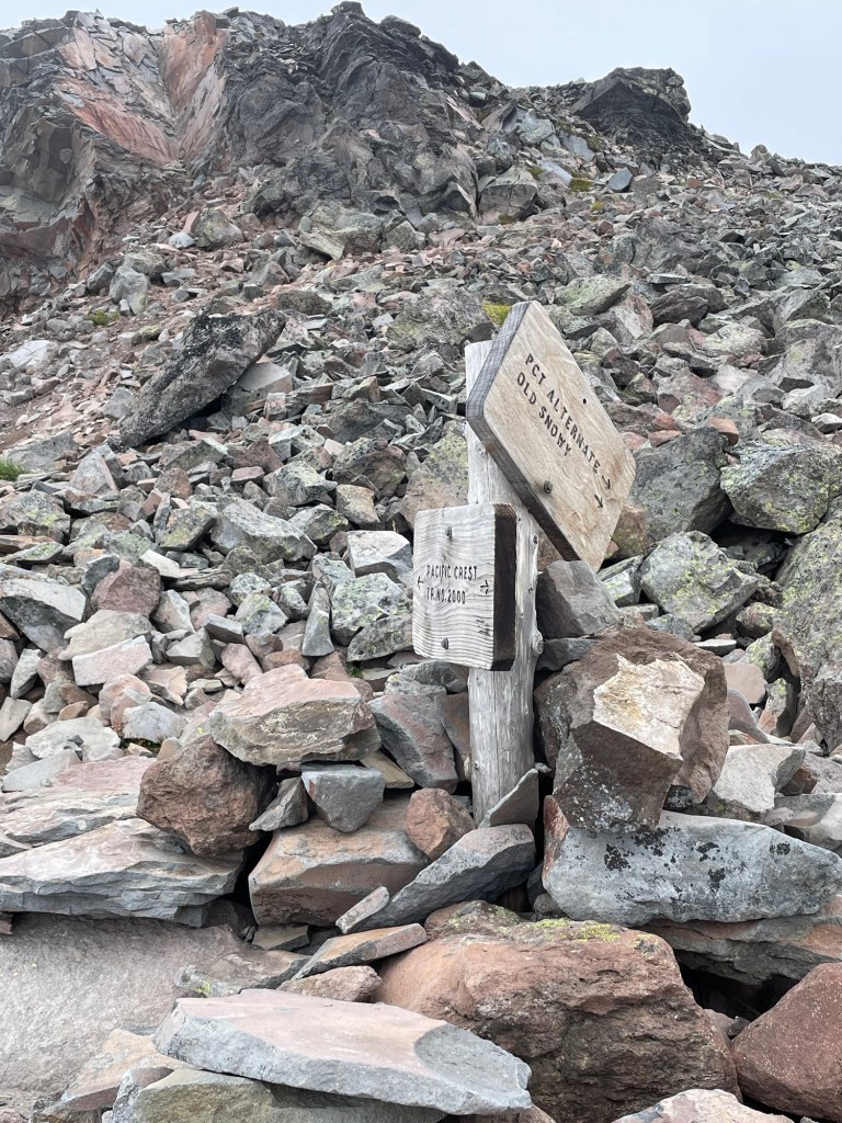 After some reflection, I came to the conclusion that the SOBO hiker who recommended I take the Old Snowy Alternate was an angel sent by God to stop me from trying to cross the glacier. Credit it to the elevation & exhaustion if you want, but that angel – whether divinely sent or not – likely saved me from a long, agonizing, emotionally distressing trek across that glacier during which I probably would have frozen with fear. The tread on my shoes was fairly worn, and my trekking poles are no substitute for an ice ax. Unlike the benign snowfield I had so much trouble crossing, the Packwood Glacier is on a steep slope, and it has hundreds of feet of run-out if one starts sliding and cannot do a self-arrest. Even now – four months later – I shudder at the thought of me trying to cross the glacier alone.