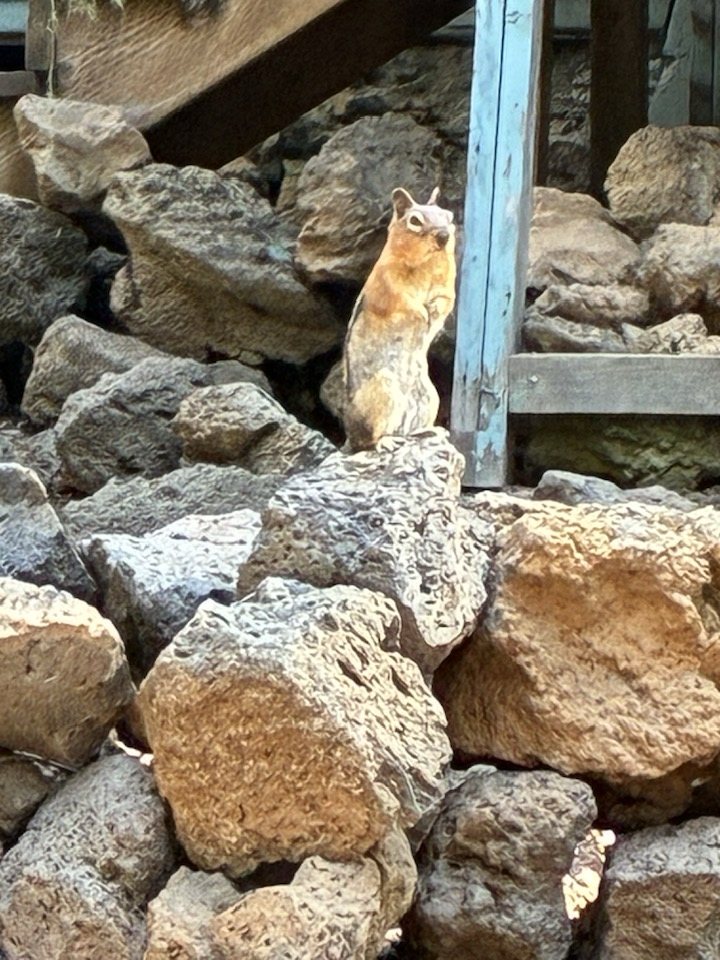 While I was hanging out at Mazama Village, I chatted a few times with a woman who was doing trail magic. She plans to thru-hike the PCT solo in 2026, and she was getting as much information as she could directly from hikers. We talked a lot. She told me that talking to me was encouraging because she was talking to so many young people and she was beginning to worry she wouldn’t be up for the challenge. In many ways, the hardest thing about doing a thru hike or any long-distance hike is getting yourself to the starting line.