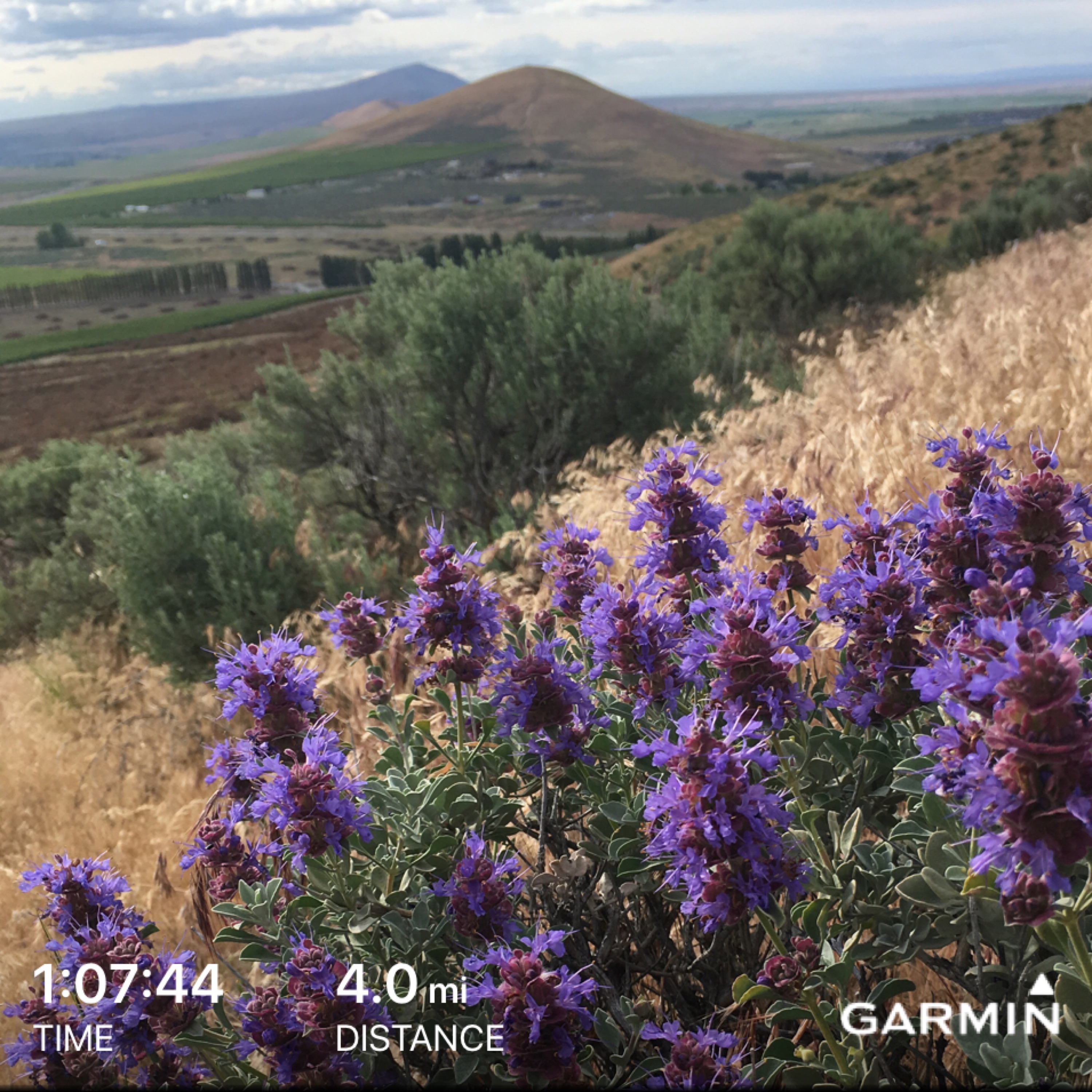 The wildflowers are blooming. Badger is the only place I’ve seen purple sage. This picture lined up perfectly: Candy, Red, and Rattlesnake Mountains all in a row behind the blooming sage.